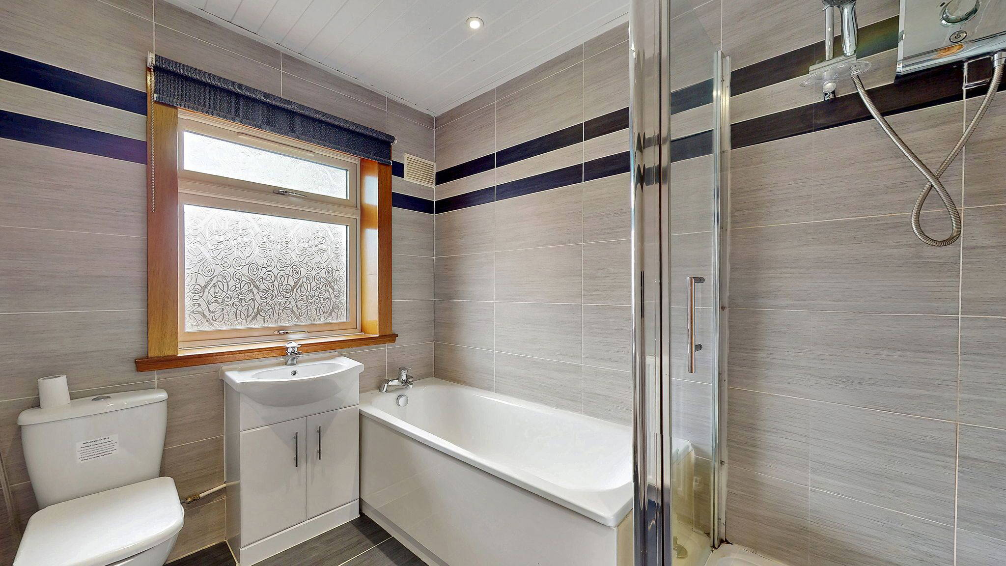 On the upper floor, the landing provides access to three well proportioned bedrooms, each offering comfortable accommodation with space for freestanding furniture. The family bathroom is fitted with a three piece suite including bath with overhead shower, wash hand basin and WC, designed with both style and functionality in mind.