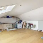 Upstairs, there are three well proportioned bedrooms and a beautifully finished split level family bathroom which includes a bath tub and a separate large corner shower cubicle. There is a floored attic with fitted units which is accessed via a pull-down ladder, offering excellent versatility and storage.