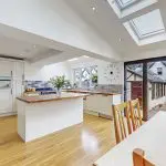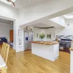 The ground floor features a bright front-facing lounge with feature fireplace and large bay window with stain glass, a contemporary open plan kitchen with dining and family area to the rear, and bifolding doors that open out to a fully enclosed garden. The kitchen is fitted with a range of wall and floor units, a range style free standing cooker and integrated appliances. A modern downstairs shower room adds everyday convenience, and the overall layout flows well for both family life and entertaining.