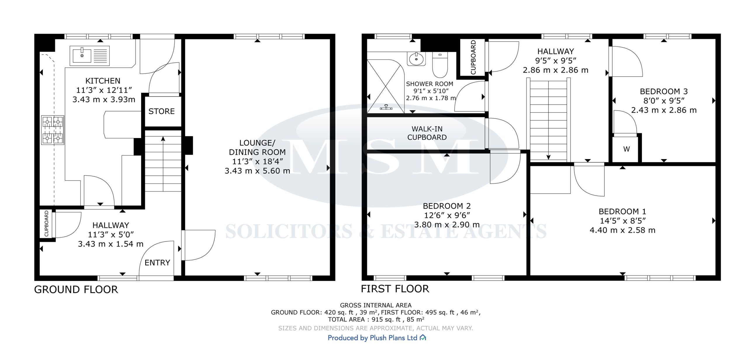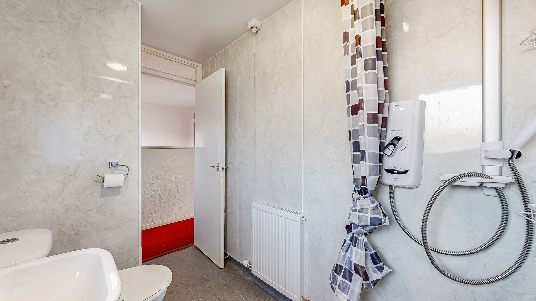 Upstairs, there are three well proportioned bedrooms, offering ample storage options and flexibility for a family, home office, or guest accommodation. The shower room features a walk in shower, sink and WC with wet wall panelling for ease of maintenance.
