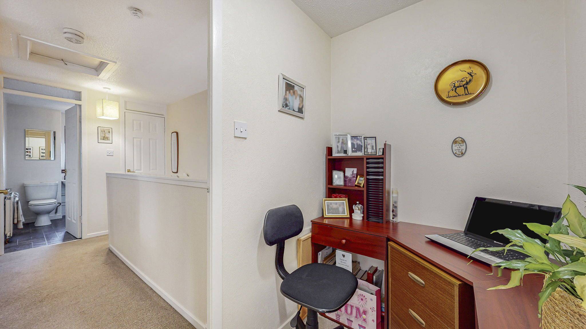 Upstairs, there are two good size bedrooms, each offering flexibility for a variety of furniture layouts. The master bedroom further benefits from an additional office/storage space, ideal for home working, wardrobe space, or general