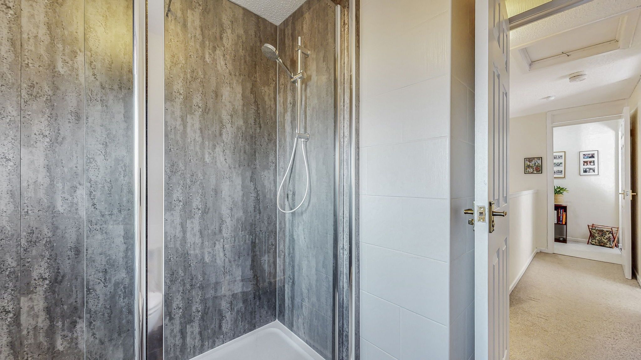 household storage. Completing the upper level is a modern shower room, fitted with contemporary wet wall panelling and a stylish walk in shower.