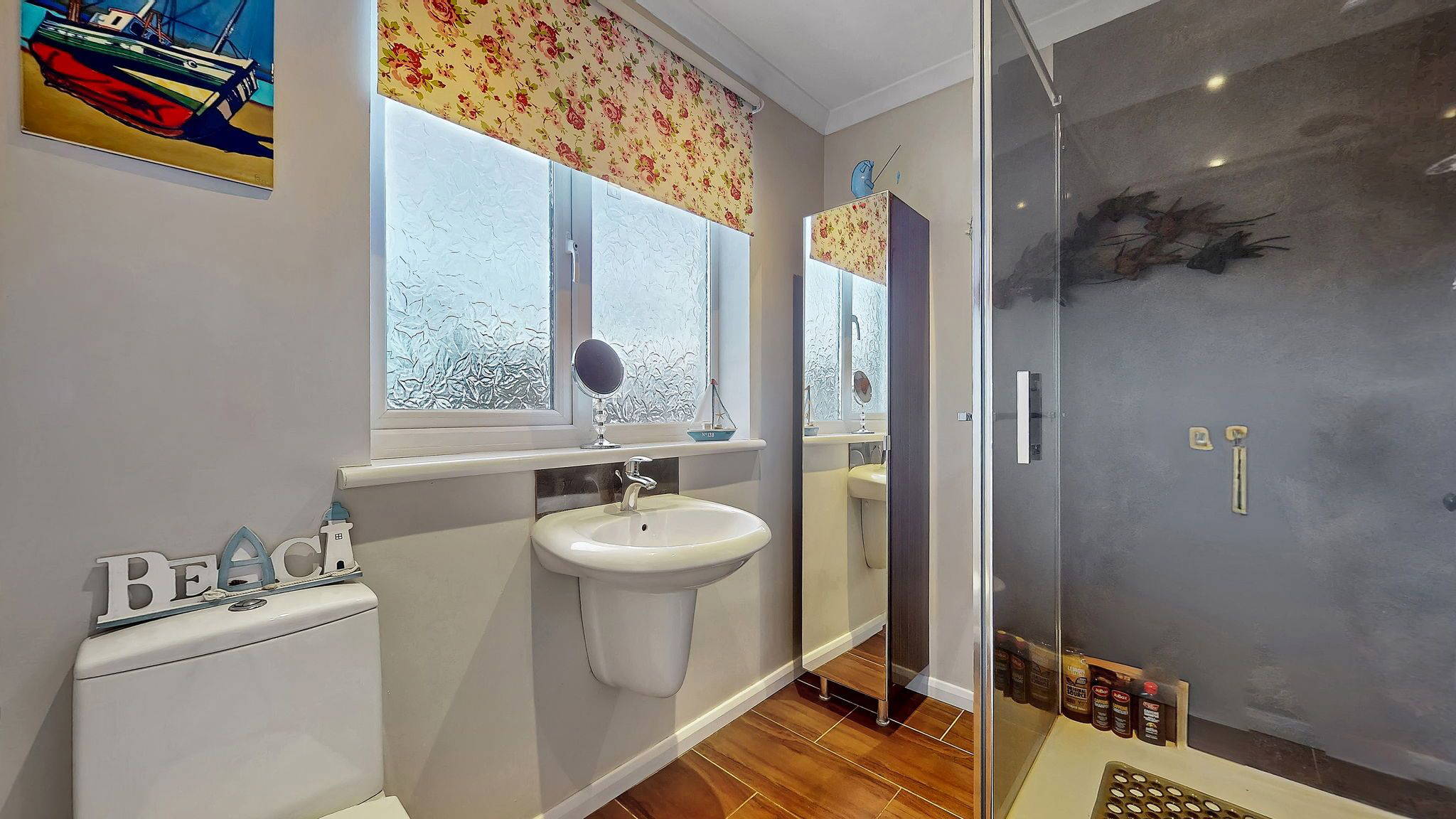 On the upper level, there are three well proportioned bedrooms, all offering comfortable accommodation, along with a contemporary shower room featuring a three piece suite including a sleek walk in shower. A floored attic provides excellent additional storage space and further flexibility.