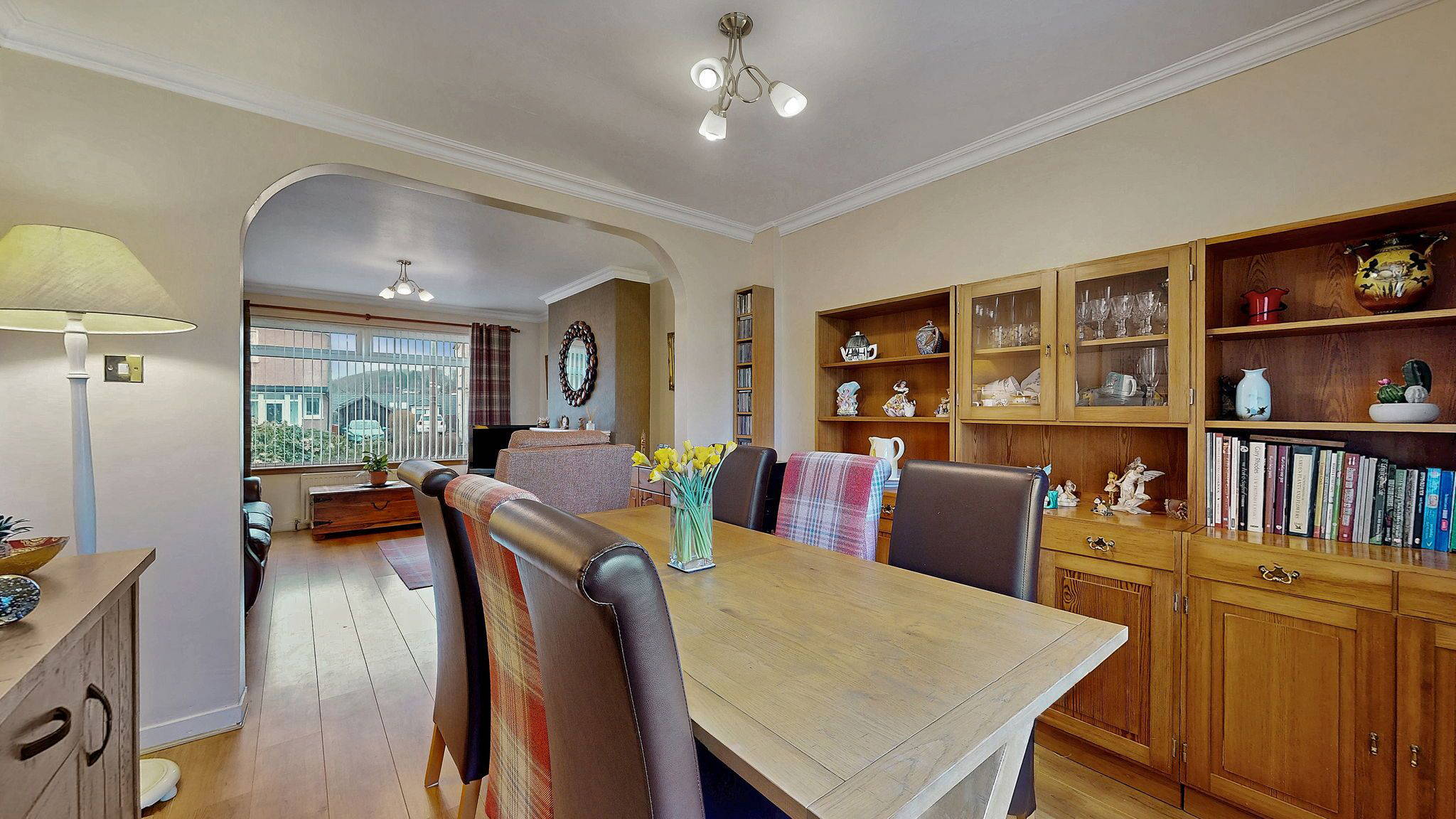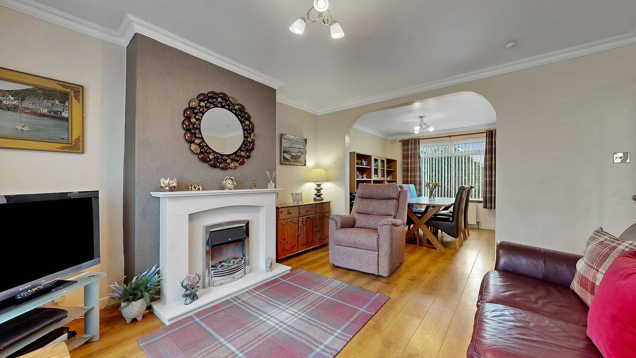 This beautifully presented three bedroom semi detached home is set within a highly desirable residential area of Bearsden, offering spacious, well balanced accommodation perfectly suited to modern family living. The property is entered via a welcoming entrance porch, leading into a bright and generously proportioned lounge and dining area, flooded with natural light and providing an excellent space for both everyday living and entertaining.