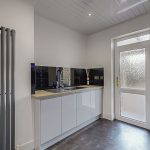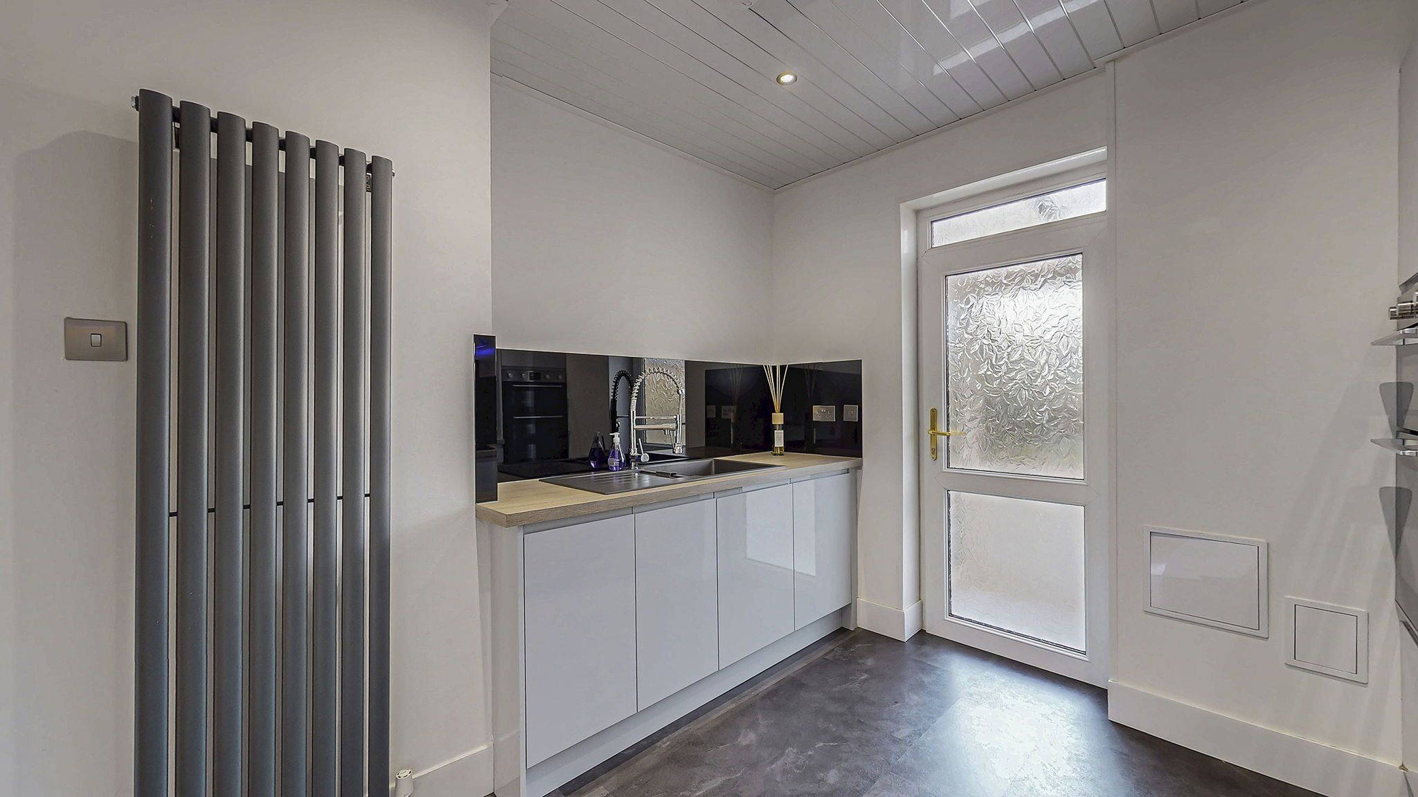 The modern kitchen which has integrated appliances is fitted with white high gloss units complemented by wood effect worktops, offering excellent preparation space and a great level of storage. Off the kitchen is a useful utility area, providing additional storage and space for appliances, with access through to the rear porch which offers further practicality and direct access to the garden.