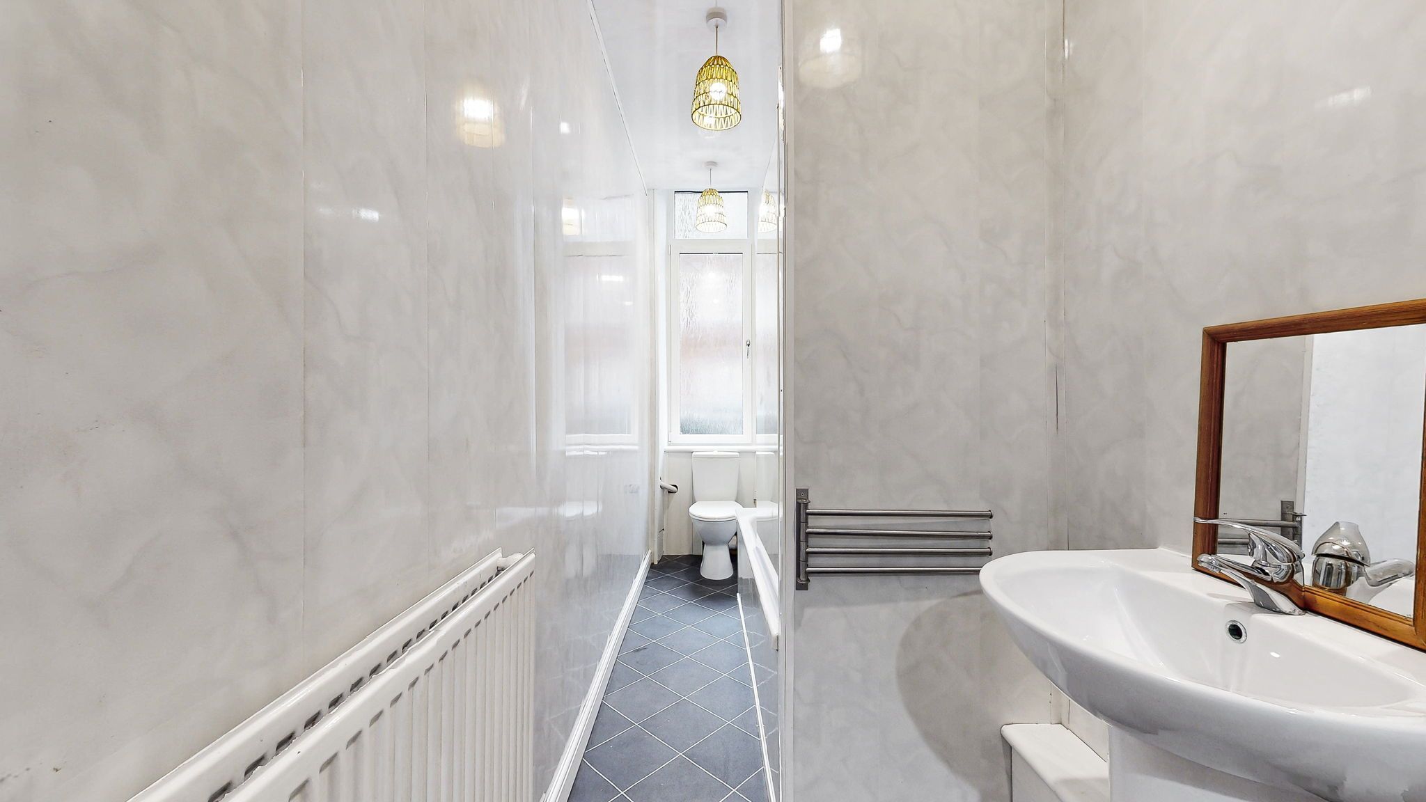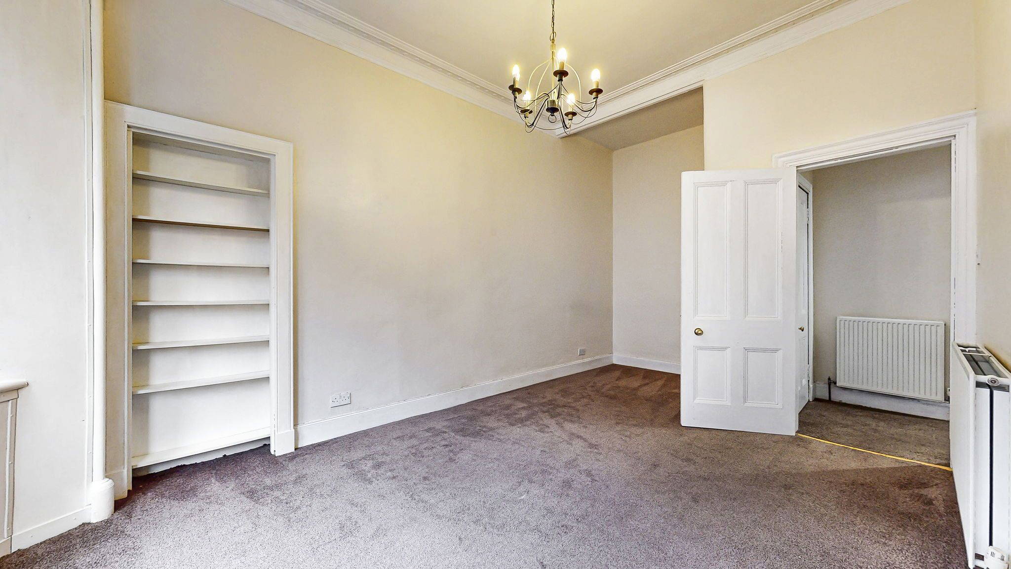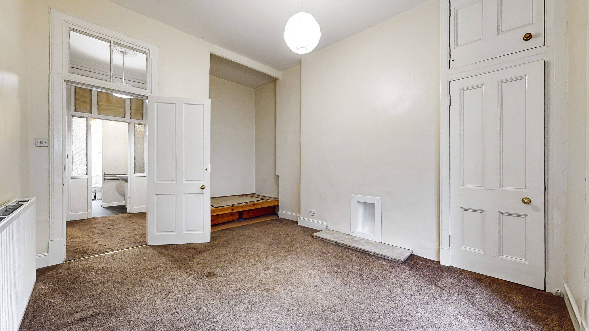 The welcoming reception hallway gives access to all rooms. The bright and generous lounge is a standout feature, boasting a traditional bay window that floods the space with natural light, complemented by high ceilings and period cornicing. The fully fitted kitchen provides ample wall and base units with plentiful worktop space and room for freestanding appliances, making it both functional and well presented.