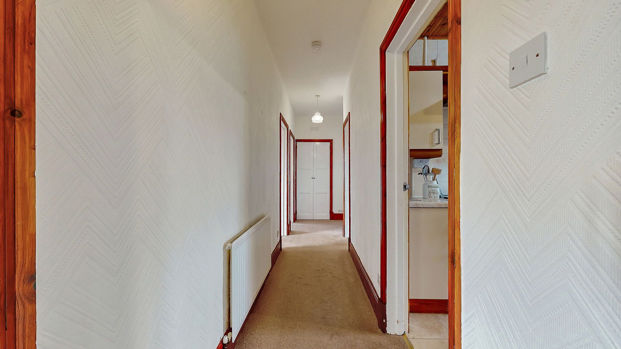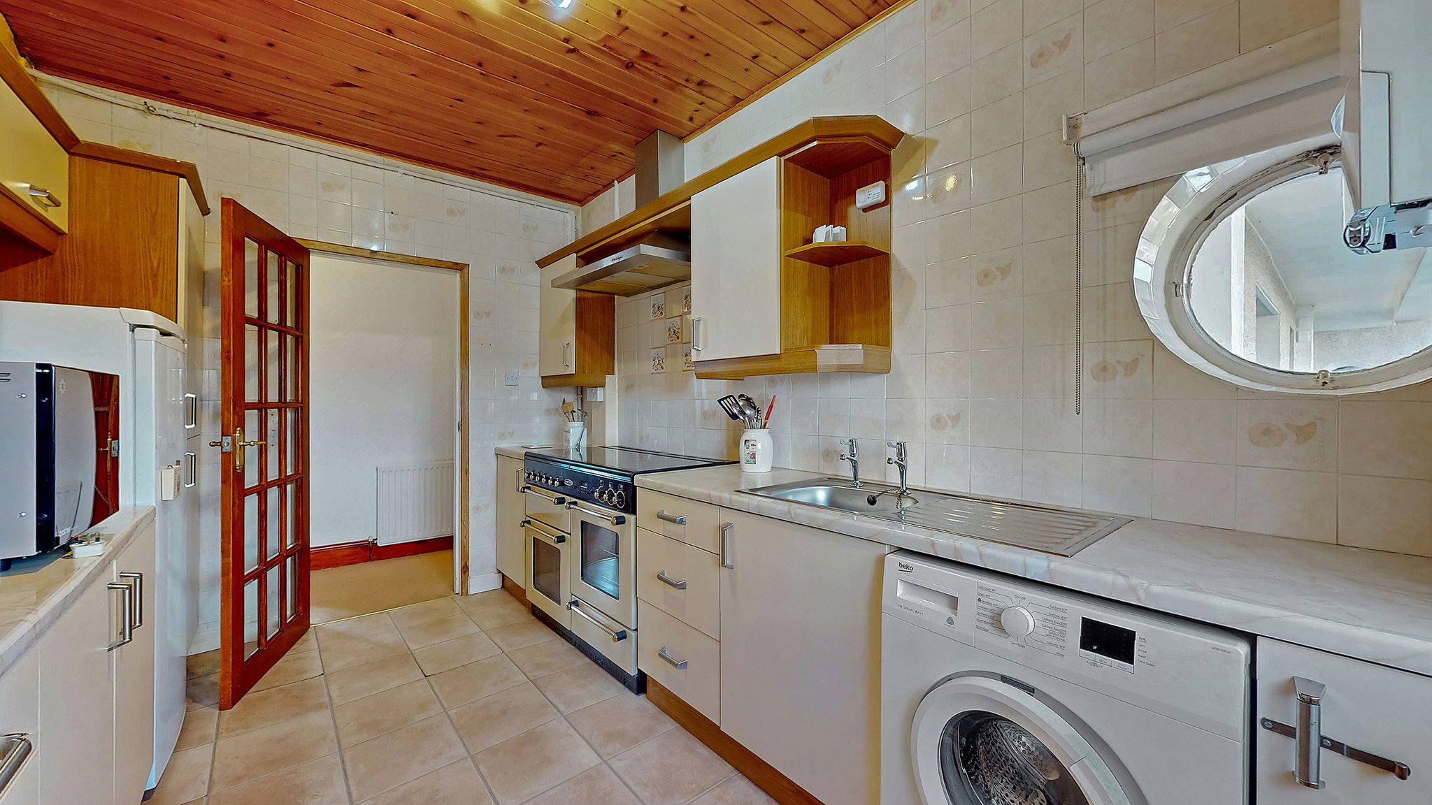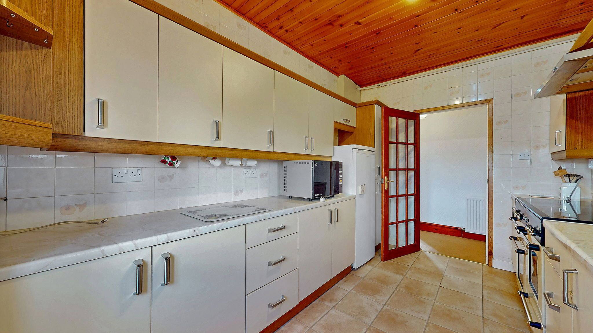 A welcoming entrance vestibule leads into a broad reception hallway, setting the tone for the space and character found throughout. The living room is a standout feature of the home, offering a bright and inviting setting with ample space for both relaxing and entertaining. The kitchen is well appointed with a range of wall and base units, providing excellent storage and workspace, making it both practical and stylish for everyday living.