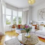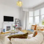Presented in pristine condition throughout, the flat features an abundance of period features such as high ceilings with coving and ceiling roses, skirtings, etc and stunning views across Paisley. The spacious entrance hallway which has a feature curved wall provides access to a large full height storage cupboard. Generous sized bright lounge which has a feature electric fireplace and charming bay window with stunning views across Paisley. The contemporary dining sized kitchen, large enough to house a table and chairs is fitted with sleek white gloss units, coordinating white worktops and has two large windows which again provide stunning views. The newly fitted modern bathroom with white 3 piece suite, includes a bathtub with overhead "rain" shower and sink with large white gloss vanity unit below providing excellent storage. The double sized bedroom which is again flooded by natural daylight by two large windows is both bright and welcoming.