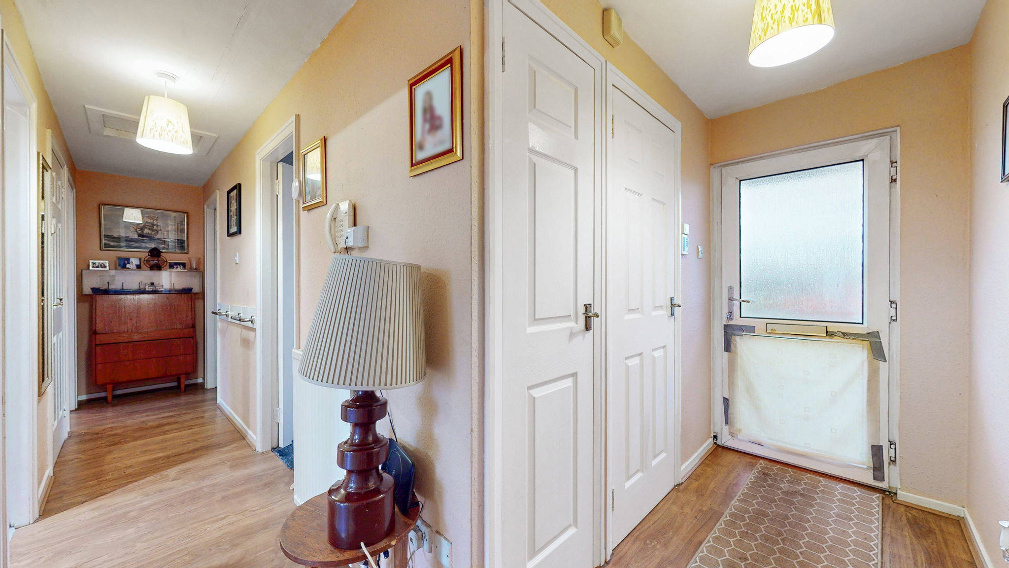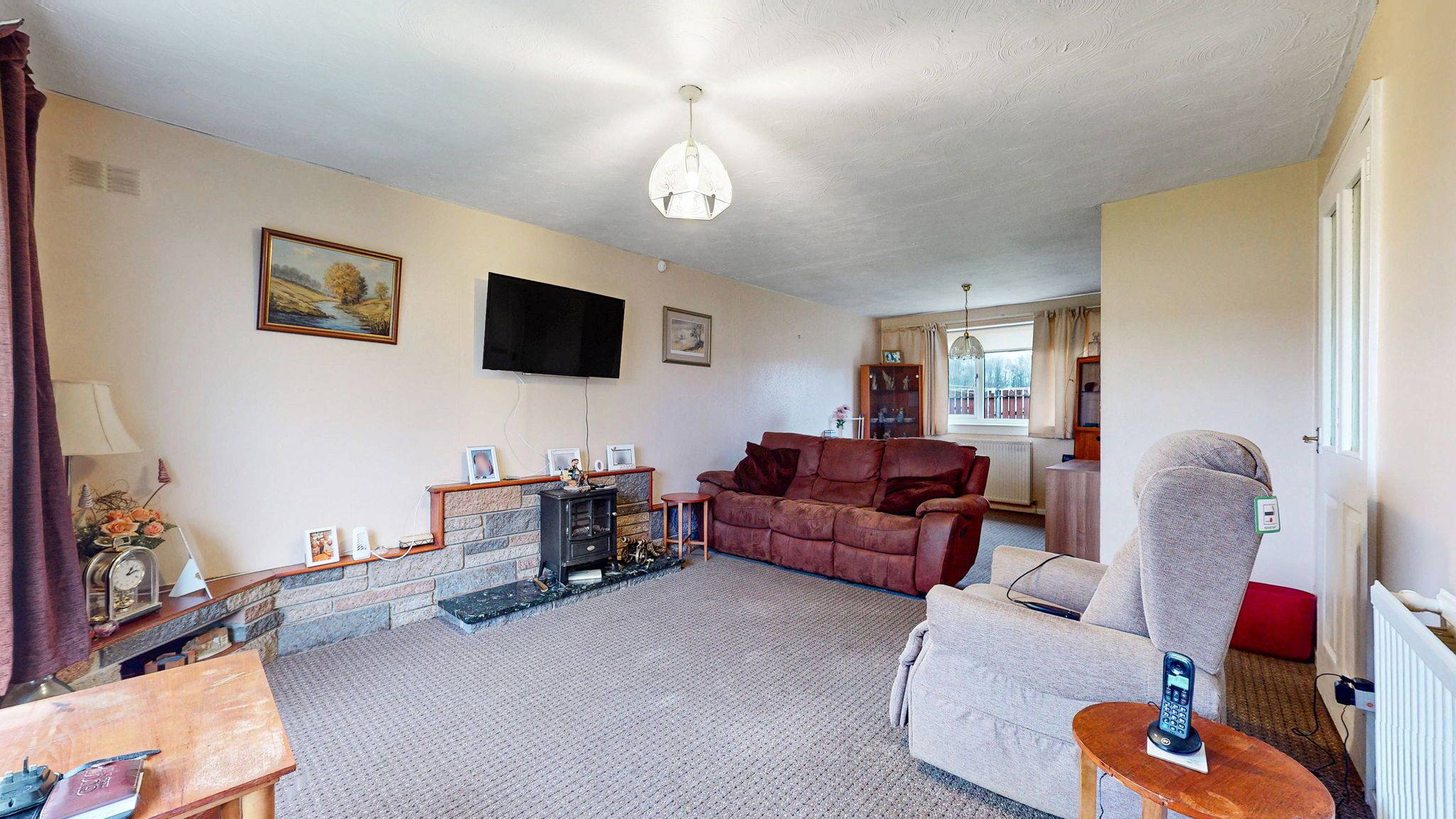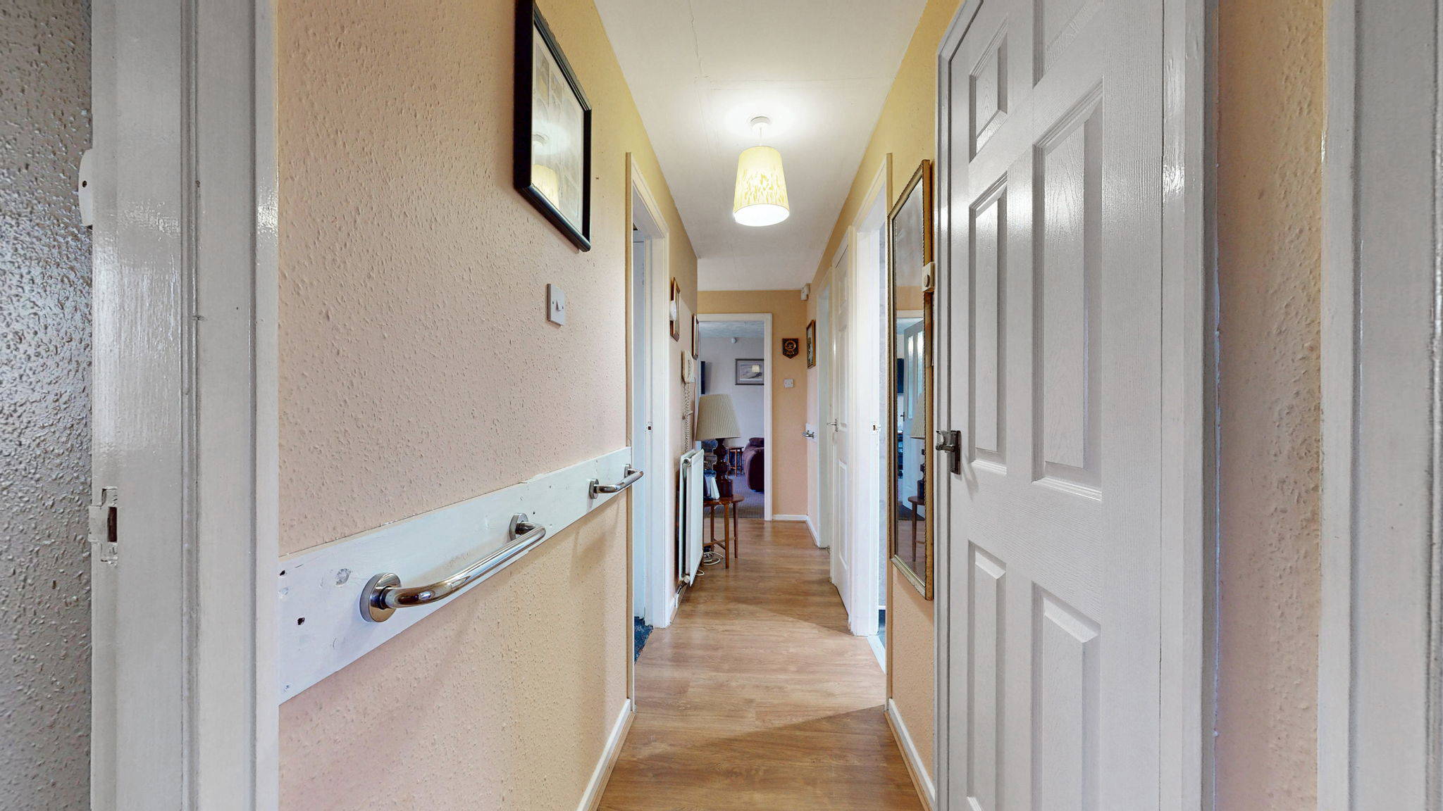 Access is gained via a welcoming central hallway which provides a practical flow to all principal apartments. The living room is bright and well proportioned, benefiting from a dedicated dining area which makes it ideal for both everyday
